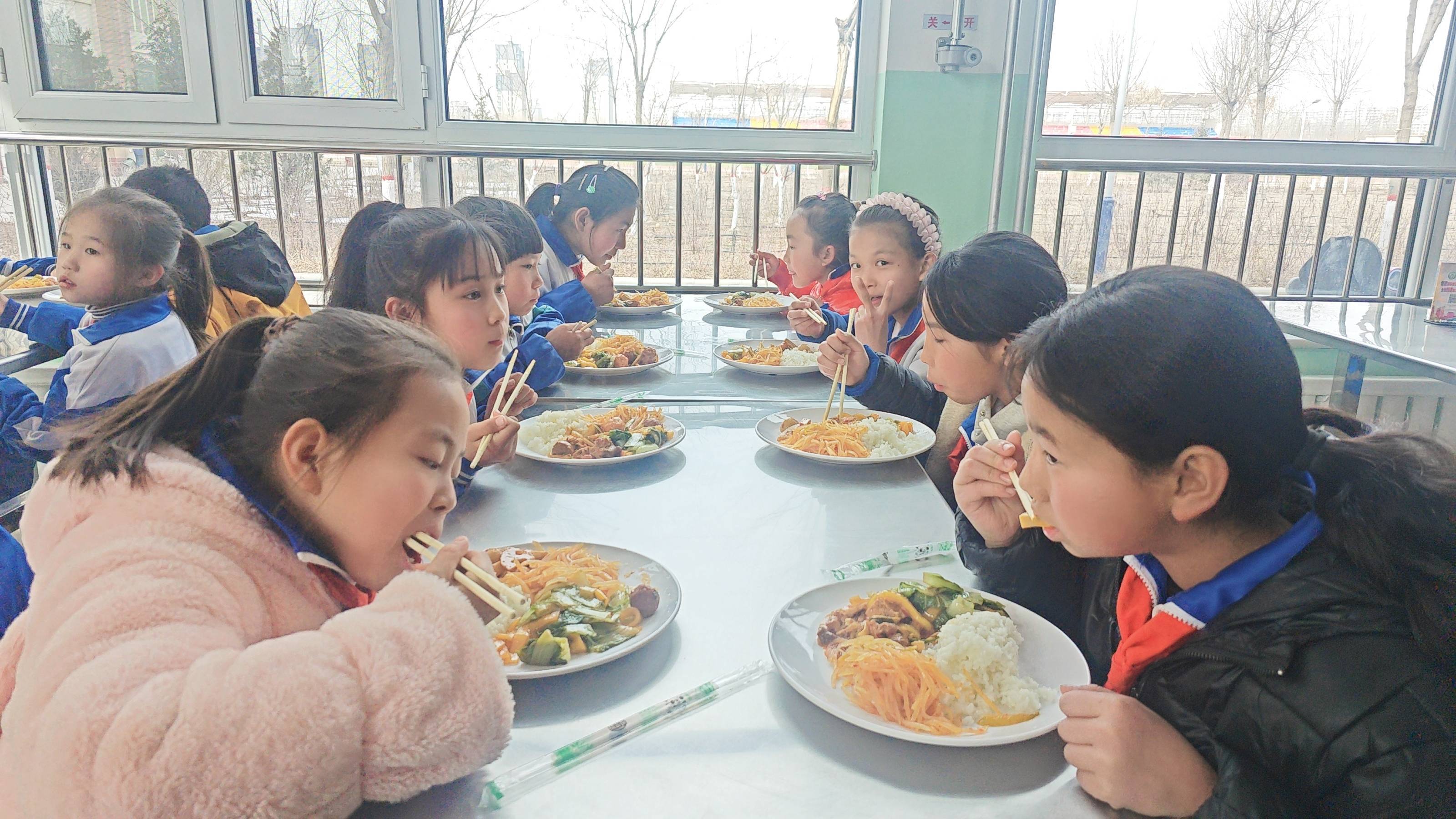 贺兰县第十小学中午组织从立岗小学和兰光小学转来的学生到学校附近的中学就餐。(受访者供图)据自治区教育厅介绍,截至2025年底,全区共优化调整中小学幼儿园688所,完成规划任务的54%;妥善安置学生1.6万名;统筹安置教师2242名。